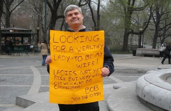 به گزارش باشگاه خبرنگاران؛ بر روي كاغذ الصاق شده بر روي اين مرد نوشته شده :" به دنبال زني خوب و پولدار هستم تا همسرم شود. تاكنون مجرد بوده ام و بچه ای ندارم و در صورت نياز با شماره اي كه در زير درج شده تماس حاصل نماييد."