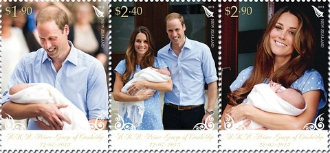 دولت نیوزلند به تازگی مجموعه ای از تمبرهای پستی را به مناسبت تولد نوه ولیعهد بریتانیا منتشر کرد. از این کودک به عنوان پادشاه آینده بریتانیا یاد می شود.