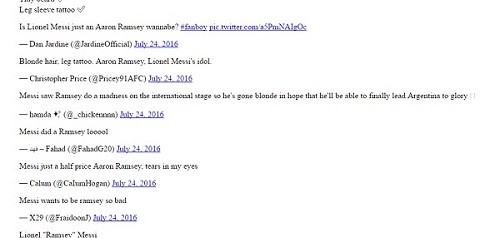 برخی از کاربران نیز واکنش منفی نشان داده اند فهد نوشته به نظرش مسی نصف رمزی هم نیست و کالم نوشته که مسی کار بدی انجام داد. یک کاربر هم با تمسخر نوشته است "لیونل رمزی مسی".
