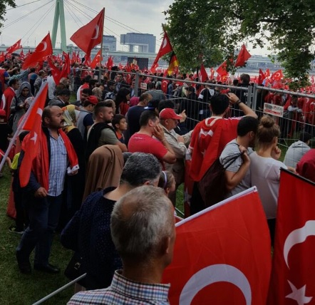 به گفته رسانه های آلمان، دستکم ۳۵ هزار نفر در تجمع شهر کلن حضور یافتند. شبکه خبری روسی "راشا تودی" به نقل از یکی از کاربران شبکه های اجتماعی نوشته که تا پیش از آن که هواداران اردوغان به صورت سازماندهی شده با اتوبوس به محل تظاهرات برسند جمعیتی کمی در حمایت از او جمع شده بودند.