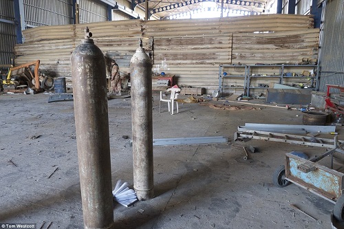 کپسول های گاز فرسوده و پیچ و مهره های کمربندهای انفجاری از جمله مواردی بودند که در کارخانه بمب سازی داعش پیدا شد.
