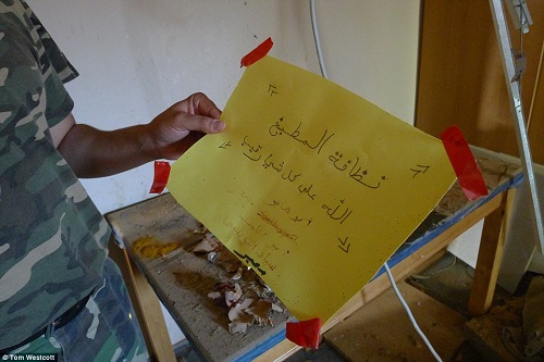 تصاویری که در ادامه می بینید، گوشه هایی از این کارخانه ساخت بمب است. ریزه های موی ریش روی زمین نشان می دهد که داعشی ها قبل از فرار صورت خود را اصلاح کرده اند تا شبیه به شهروندان عادی به نظر برسند.