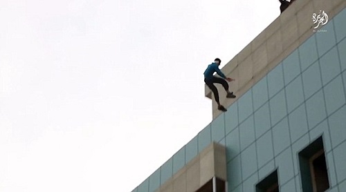 پرتاب مرد همجسنگرا از بلندی توسط داعش