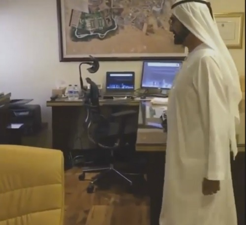 شبکه خبری العربیه فیلمی را منتشر کرده که نشان می دهد حاکم دبی با ورود به دفتری در یکی از ادارات متوجه شده که مدیر مربوطه در آنجا حضور ندارد.