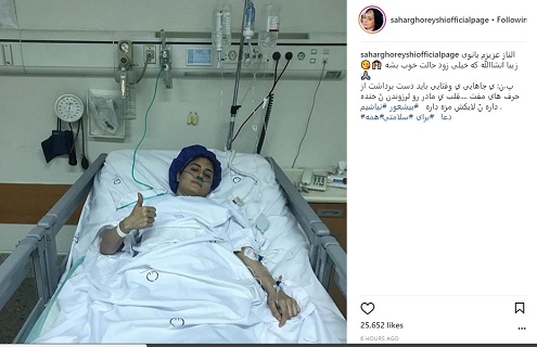 این بازیگر نوشت: «الناز عزيزم بانوى زيبا انشاالله كه خيلى زود حالت خوب بشه ىِه جاهايى ىِه وقتايى بايد دست برداشت از حرفهاى مفت ....قلب ىِه مادر رو لرزوندن نَه خنده داره نَ لايكش مزه داره.»