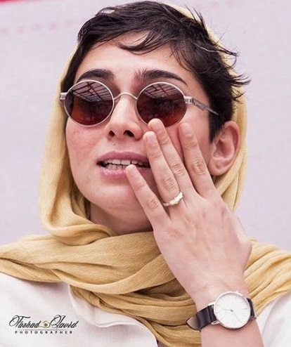 خرداد: این عکس از پگاه آهنگرانی منتشر شد که سعی دارد حلقه اش را نشان بدهد. او از این طریق ازدواج خود را اعلام کرد.
