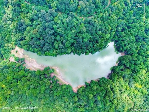 تصویر هوایی از دریاچه "چورت" در نزدیکی ساری، مقصدی بکر در طبیعت استان مازندران است که زیبایی چشم نوازی دارد.