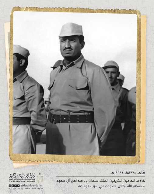 خرداد:نهاد فرهنگی "ملک عبدالعزیز" تصویر قدیمی از ملک سلمان با یونیفورم نظامی در جریان جنگ 1969 عربستان و یمن منتشر کرد.
