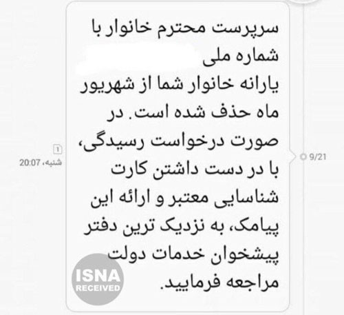 به گزارش خرداد به نقل از ایسنا؛ از شنبه سی شهریورماه پیامک های ارسالی قطع یارانه برای مشمول ارسال می شوند،آن دسته از افرادی که اعتراض دارند می توانند با مراجعه به پیشخوان دولت کد رهگیری دریافت و اعتراض خود را ثبت کنند.