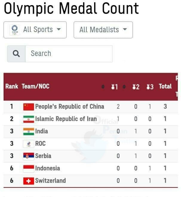 counter create hit اتفاقی نادر در جدول مدال‌های المپیک | ایران در رتبه دوم