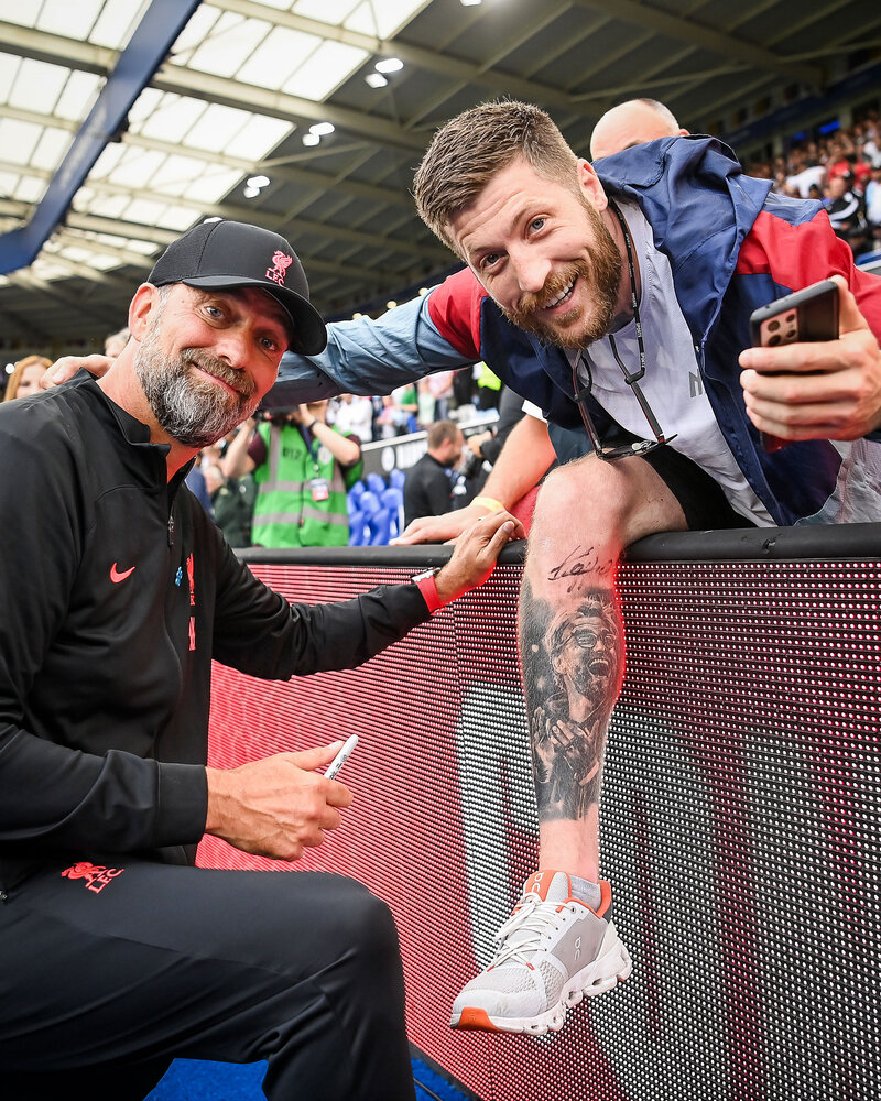 این هواداران لیورپول تصویر سرمربی آلمانی قرمزهای مرسیساید را روی پای خود خالکوبی کرده و کلوپ هم که از تصویر به وجد آمده بود بالای آن را امضا کرد و سپس با او عکس گرفت.