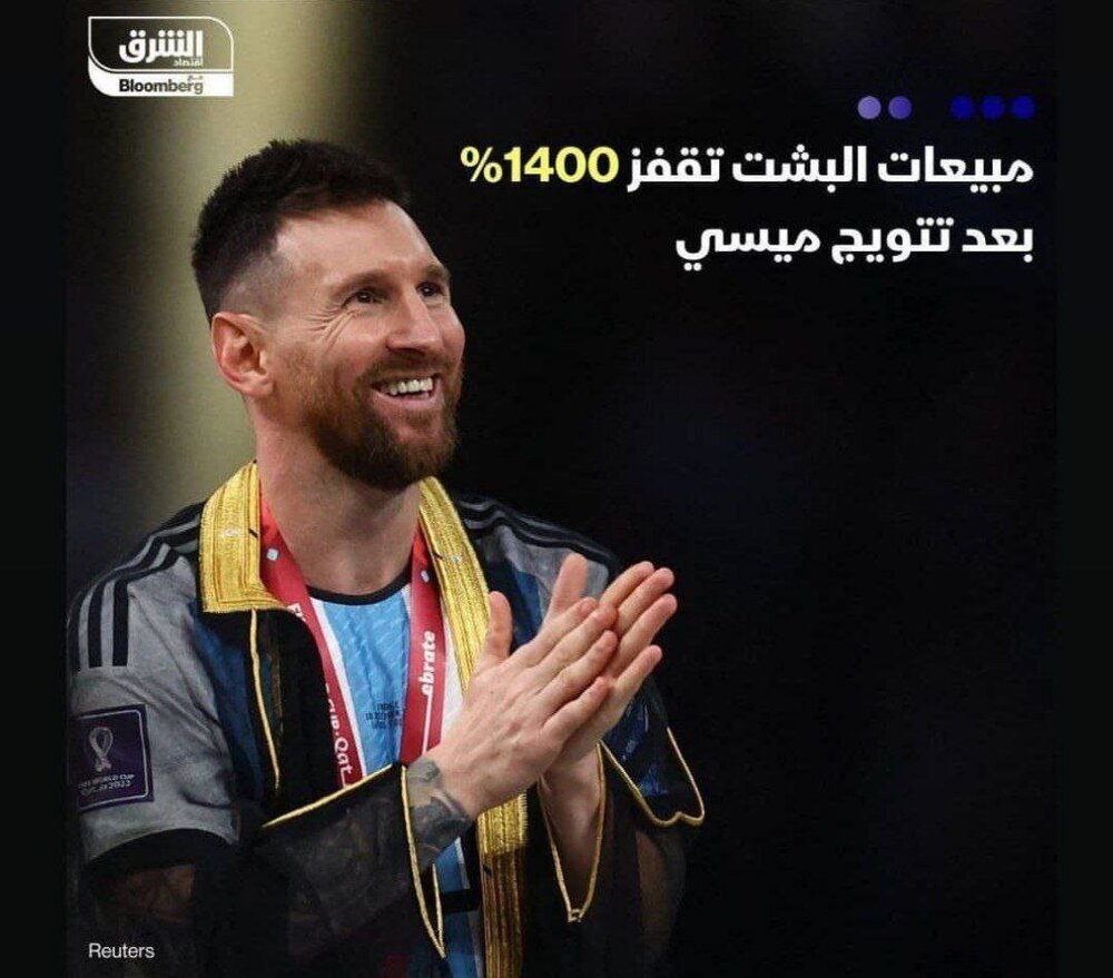 به گزارش خبرگزاری خبرآنلاین، پس از قهرمانی آرژاتتین در جام جهانی ۲۰۲۲ قطر و قبل از این که مسی با جام به سمت هم تیمی هایش برود امیر قطری در حرکتی بحث برانگیز لباس مخصوص عرب هارا بر تن او کرد تا همه تصاویر مسی در شادی با جام جهانی با این لباس باشد.
