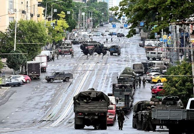 یک ستون زرهی واگنر از شرق اوکراین تصرف شده به روسیه رفته بدون آن که با مقاومت زیادی روبرو شود. به نظر می‌رسد که نیرو‌های واگنر ساختمان‌های کلیدی را در روستوف آن دون مقر فرماندهی ناحیه نظامی جنوب روسیه و یک گره لجستیکی مهم برای "عملیات نظامی ویژه" مسکو تصرف کرده اند. ژنرال‌های روس وحشت زده از پریگوژین خواسته اند که عقب نشینی کند و "کودتای دولتی" خود را لغو نماید. خودرو‌های زرهی در خیابان‌های مسکو در حال تردد هستند که ظاهرا برای محافظت از وزارت دفاع و سایر مراکز بوروکراتیک در برابر حملات احتمالی داخلی فرستاده شده اند.