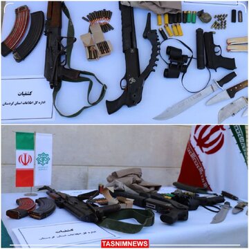 از این تیم چهارنفره سه قبضه اسلحه کلاش، کلت، سلاح شکاری ساچمه زنی، دو دست لباس نیروهای نظامی و تعدادی اسلحه سرد بدست آمده است.
