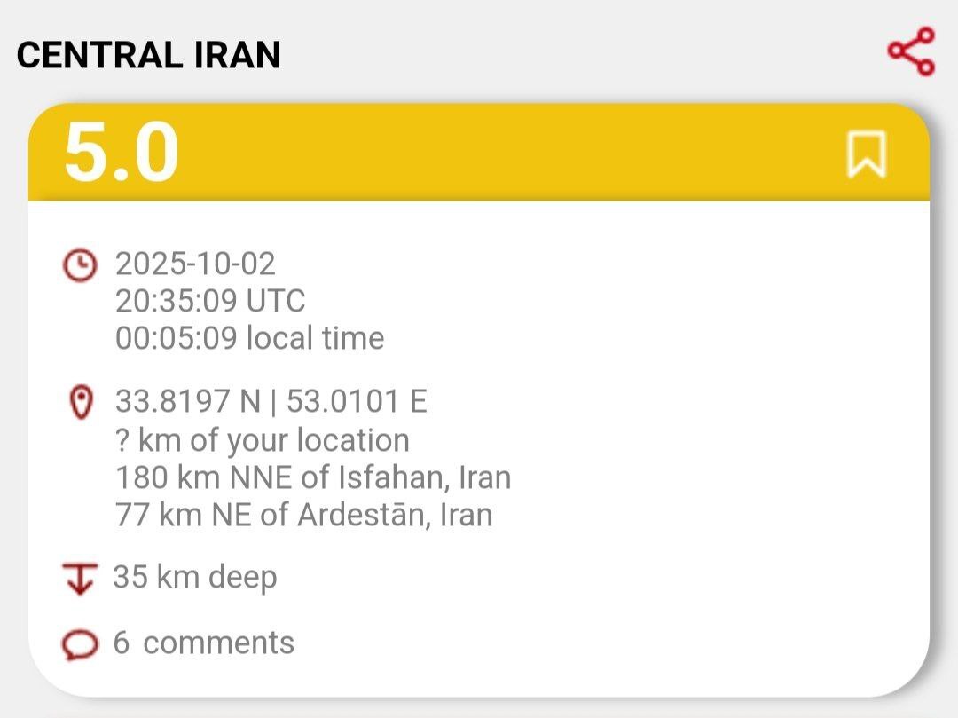 ایران دقایقی پیش لرزید؛ زلزله به اردستان استان اصفهان مرتبط بوده است.