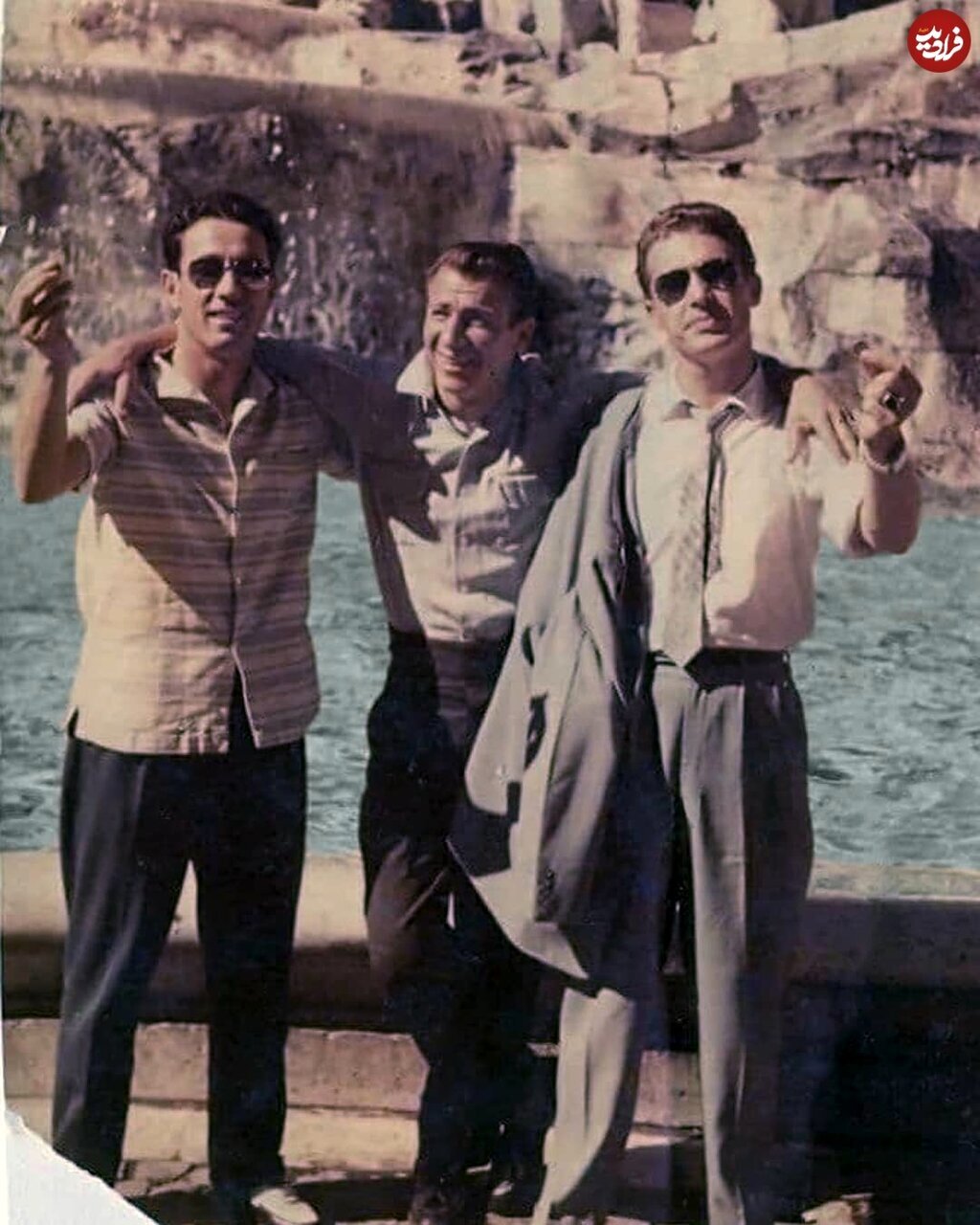 تصویری کمتر دیده شده از نادر جهانبانی (سمت راست) معاون فرماندهی نیروی هوایی را در حال پرتاب سکه در یک آبنما در شهر رم و در اواخر دهه ۳۰ را میبینید